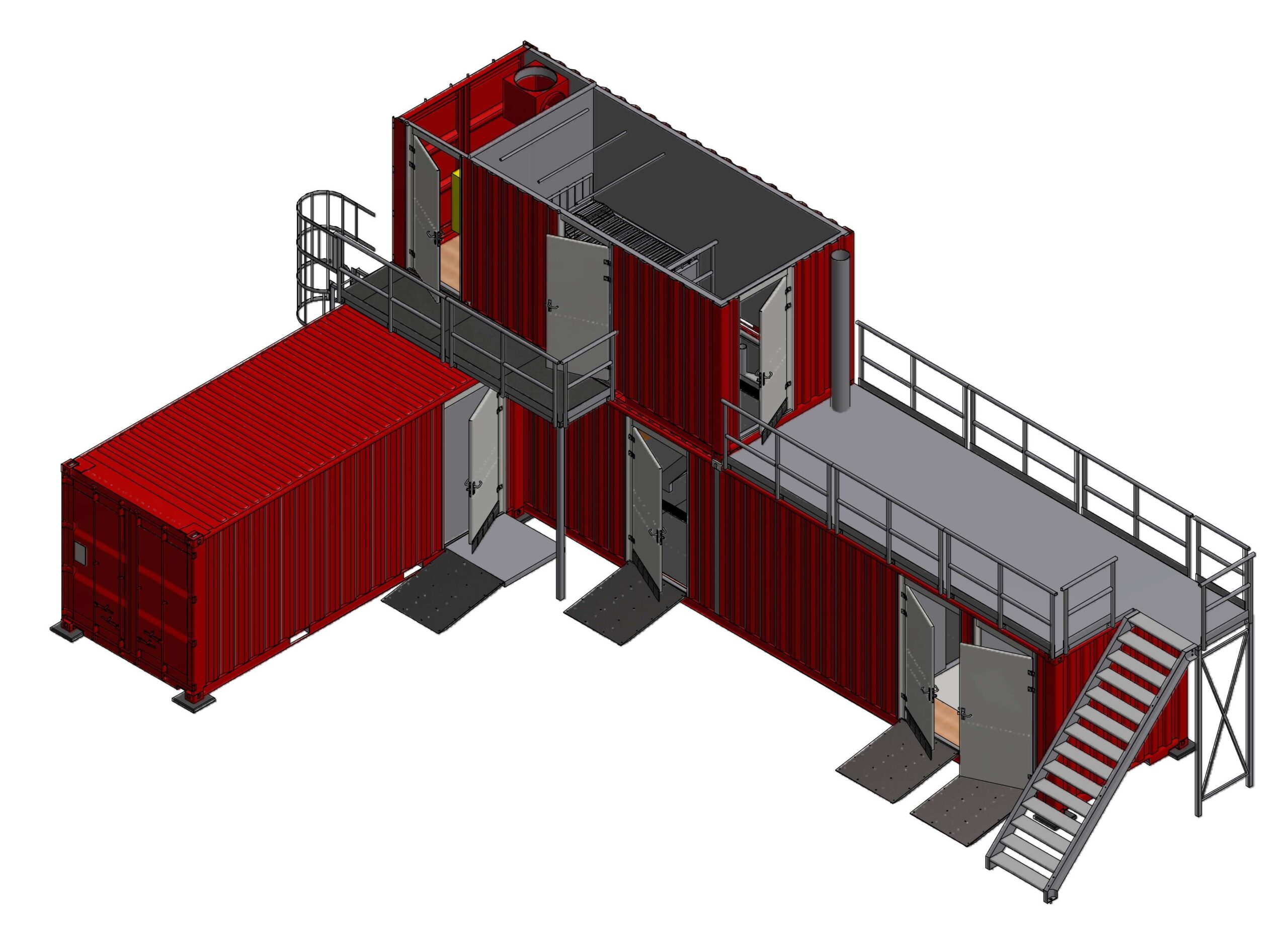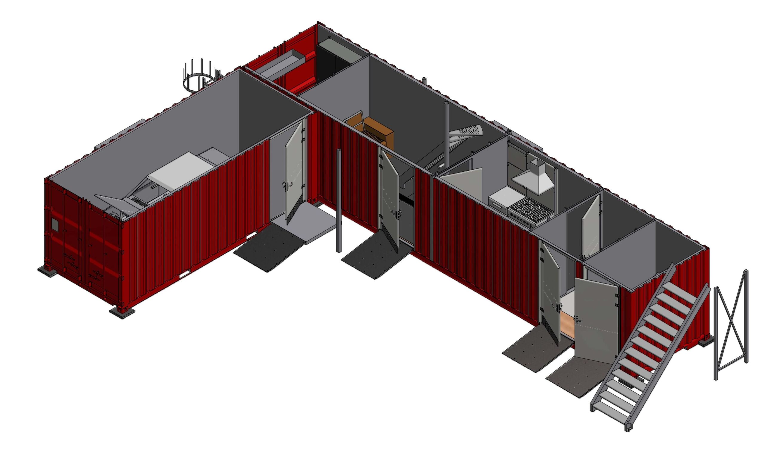 Leur conception permet une modulation de la géométrie intérieure en fonction des effectifs, tout en garantissant l’intimité des utilisateurs. L’ensemble est organisé selon une logique stricte de marche en avant, distinguant clairement les circuits « pieds propres » et « pieds sales ».