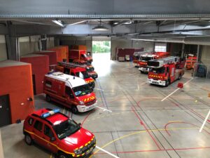Sa toiture largement dimensionnée offre un potentiel de valorisation solaire et participe à la performance environnementale de l’ensemble. La remise est également pensée comme un espace polyvalent : ses dimensions permettent un usage ponctuel en mode gymnase, sans altérer l’astreinte opérationnelle ni déplacer les véhicules stratégiques.